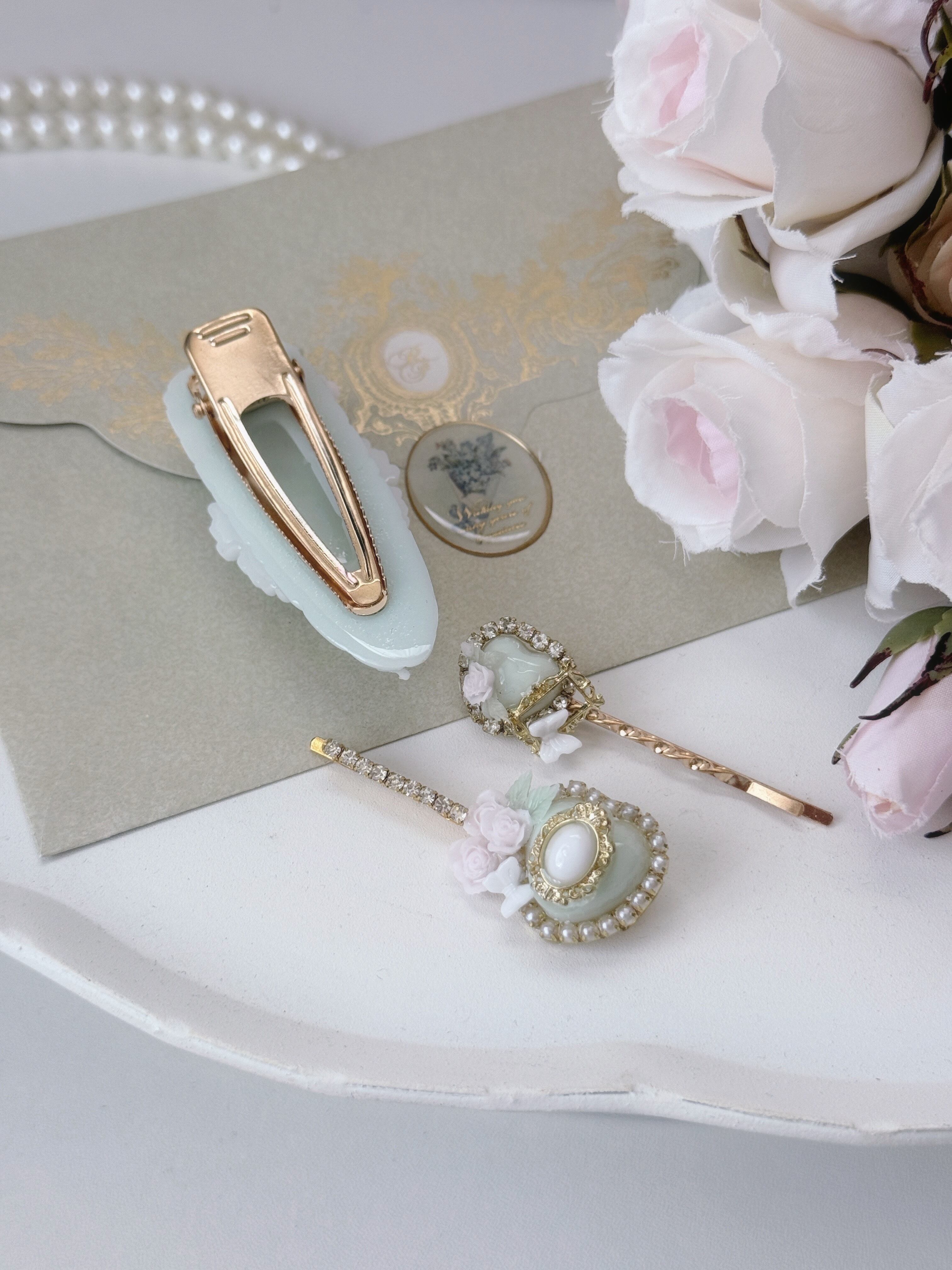 ヘアクリップ1点とヘアピン2点のセットアクセサリーです♡