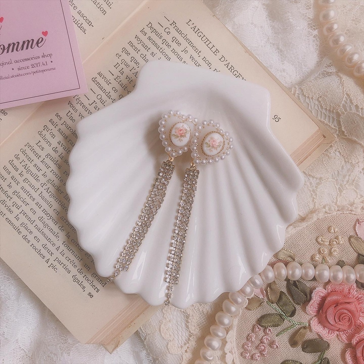 繊細な薔薇のデザインされた Japan Vintage のカボションは、 Petite Pomme を始めた当初から使っているパーツで私自身とても思い入れがあり気に入っている物です。