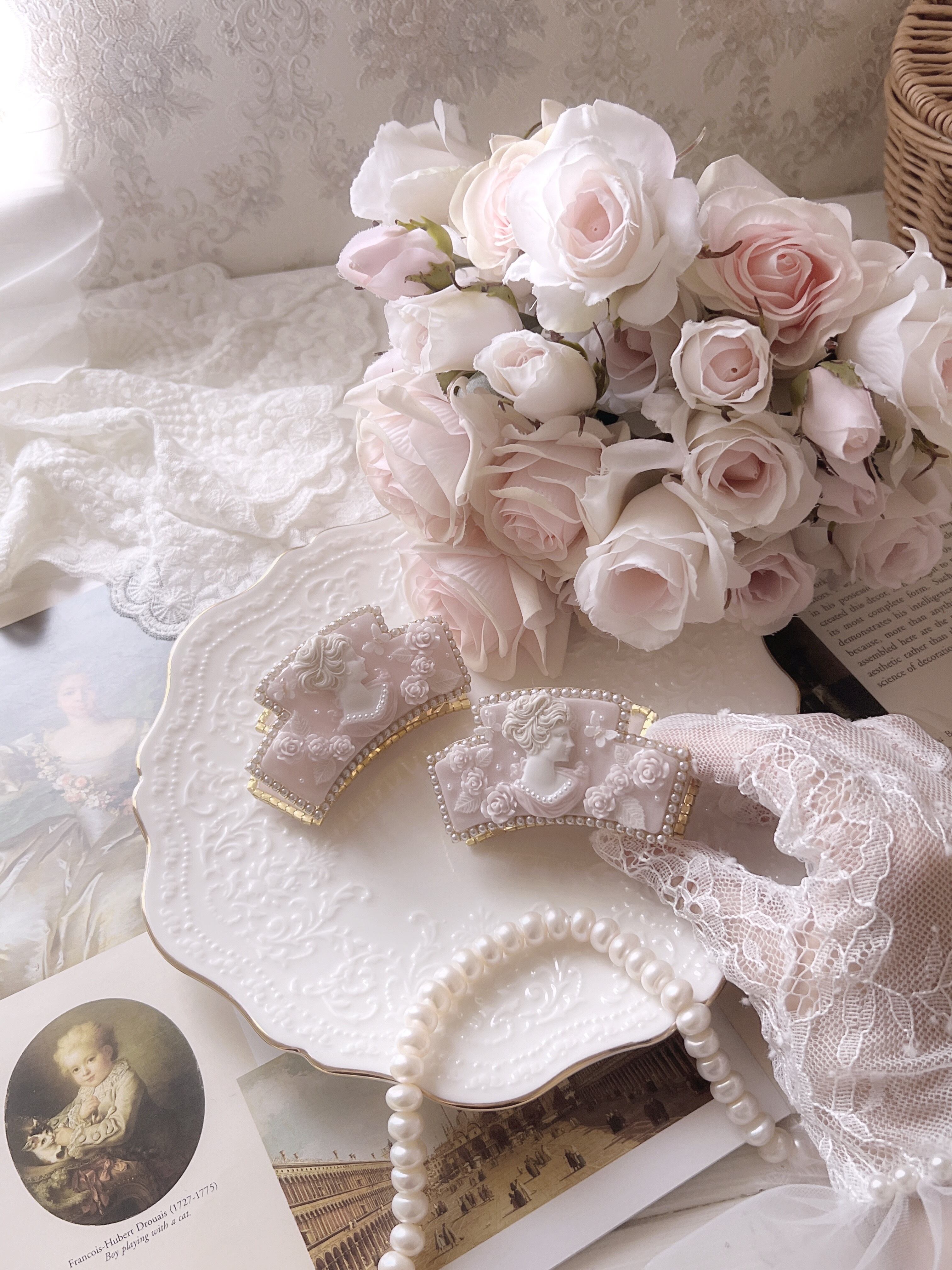 薔薇園に佇む淑女、そんな風景を一つのアクセサリーに落とし込み