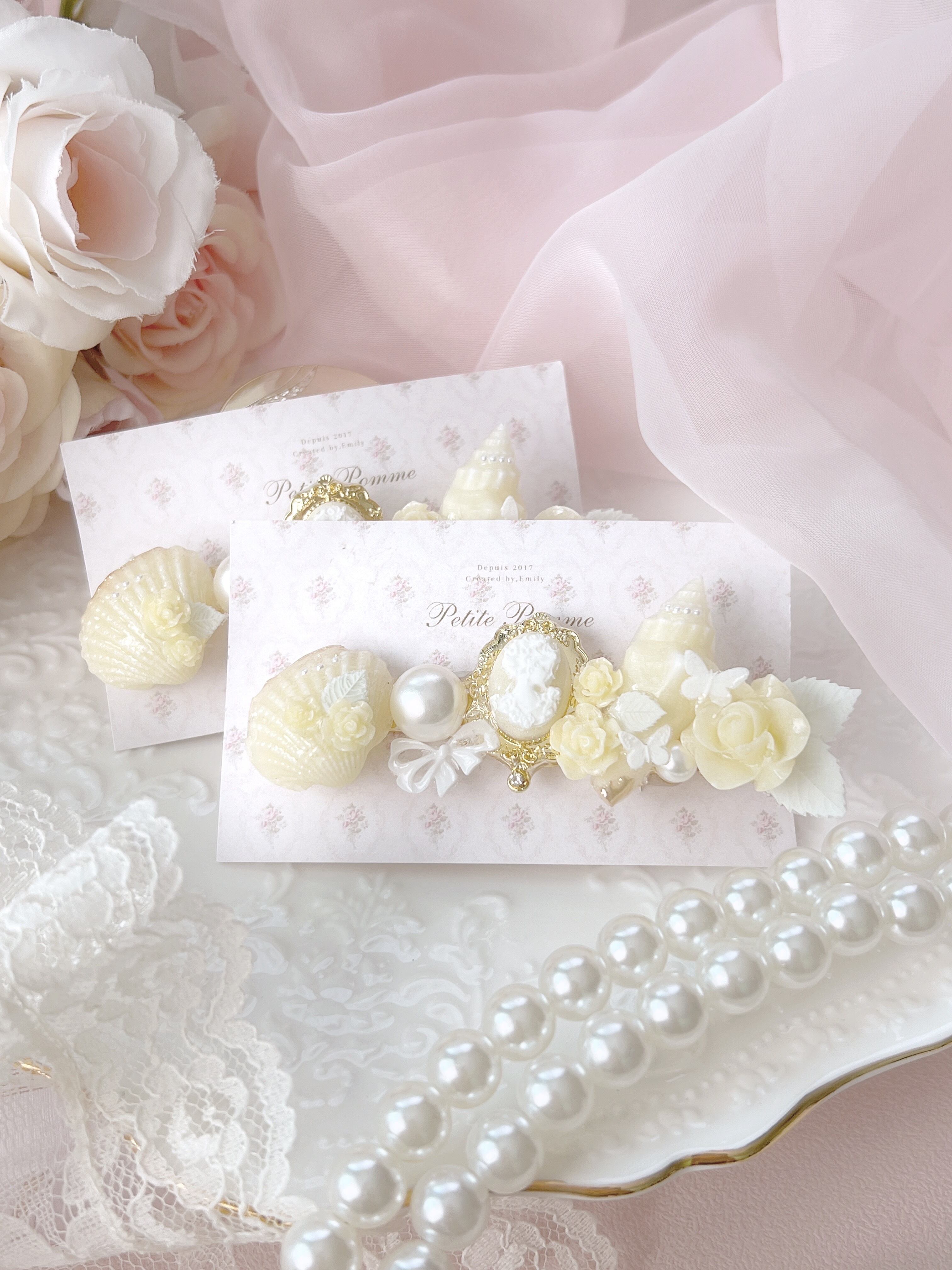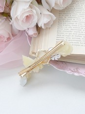 落ち着いた淡いイエローカラーに調合して作り上げたヘアクリップ。